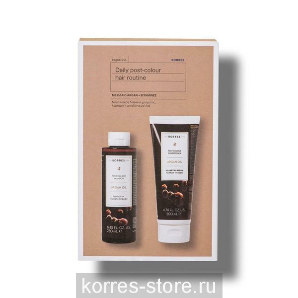 Универсальный набор любимых продуктов от KORRES по уходу за волосами после окрашивания с аргановым маслом по специальной промо-цене.